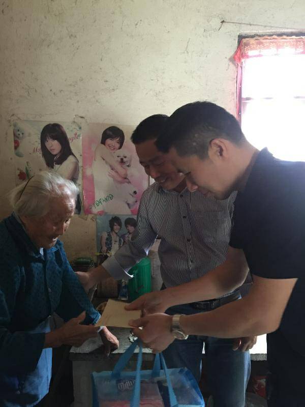 重阳节浙江乐竞·网站官网登陆入口-乐竞(中国)纸业陈少林董事长、生产部经理邵忠华等企业高层前往结对村看望困难老人
