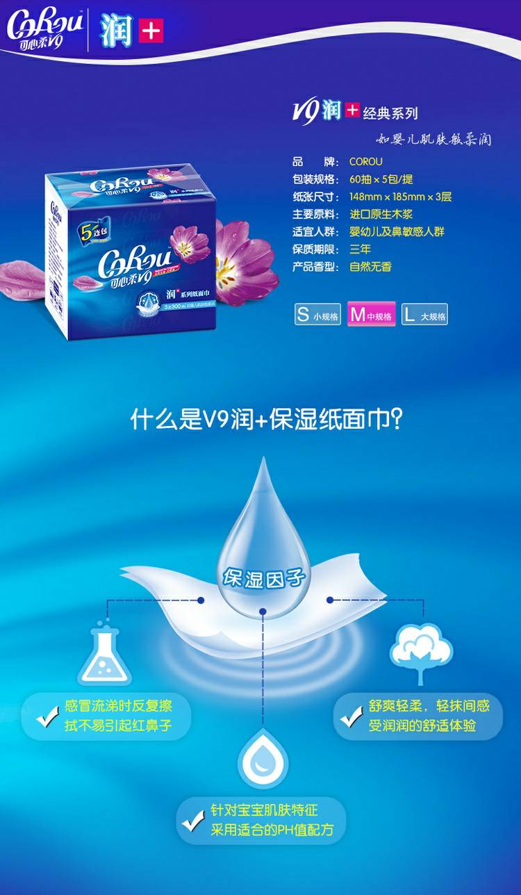 CoRou V9润+系列CoRou云柔系列白色木浆110抽