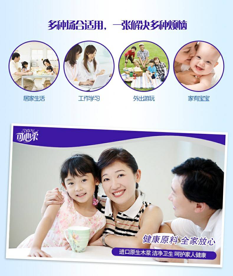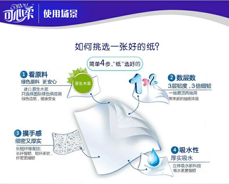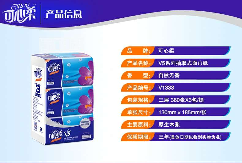 可心柔 V5系列CoRou云柔系列白色木浆60抽